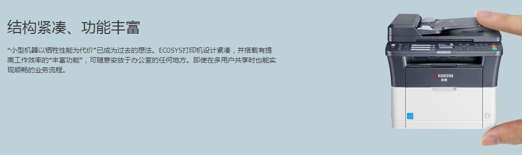 設(shè)計(jì)緊湊的京瓷打印機(jī)和多功能一體機(jī)可隨意安放于任何地方。這些機(jī)器同時(shí)還配備了可滿足標(biāo)準(zhǔn)辦公需求的幾乎所有功能。一臺(tái)小型多功一體機(jī)就可完成多種文檔處理工作。